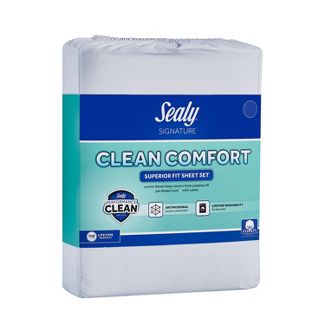 King 300 Thread Count Clean Performance Solid Sheet Set Blue - Sealy